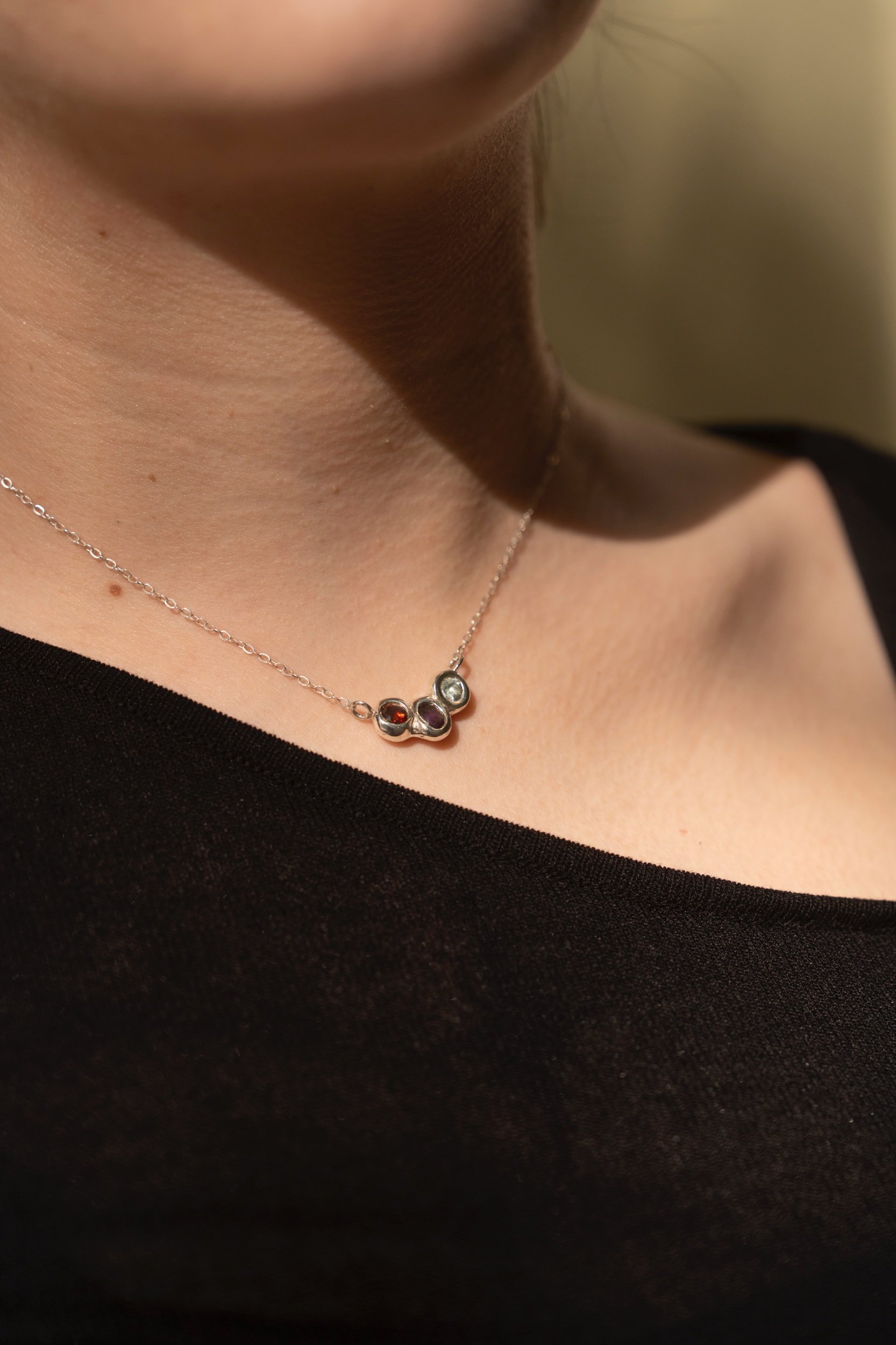 Image 1 of 2 Image 2 of 2 Eikona €200.00 925 sterling silver necklace with a garnet, an amethyst and a skyblue topaz. Quantity: Add To Cart Added! 925 sterling silver necklace with a garnet, an amethyst and a skyblue topaz.